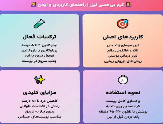 - کاهش درد و سوزش در جلسات لیزر موهای زائد